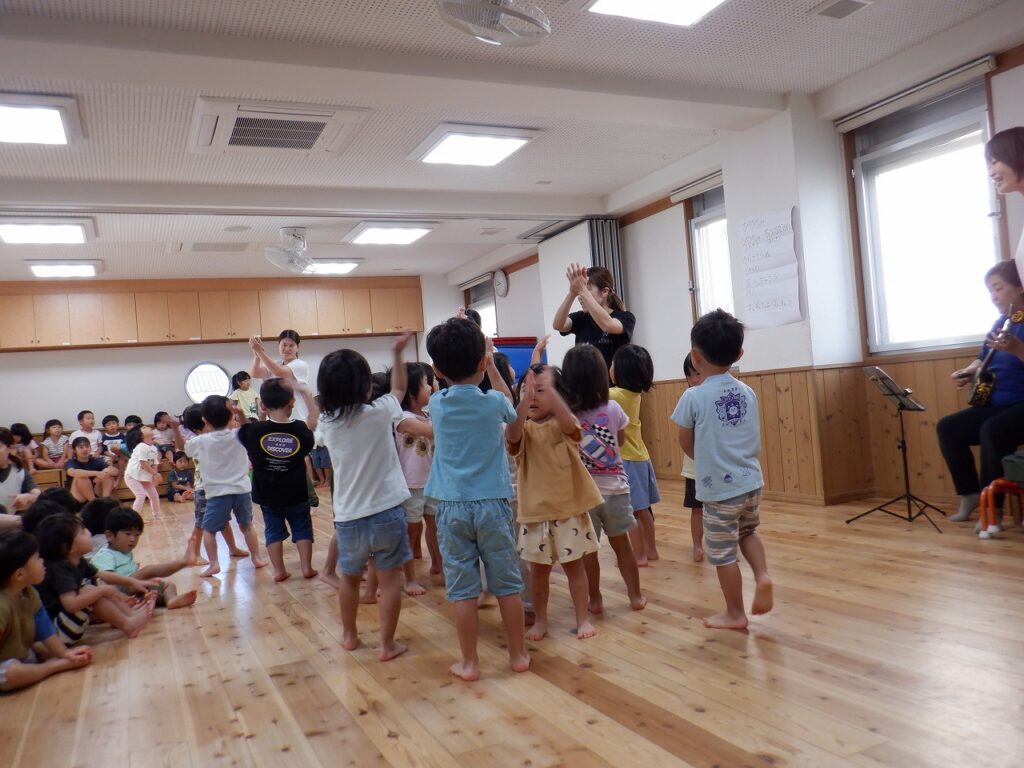 おひさまさんが踊るということで、職員もあかちゃんも、園のみーんなで踊りたい!